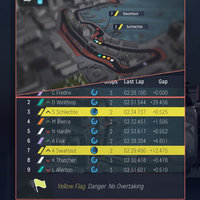 • Watch the race in real-time or jump into the strategy screens to take control of the action.