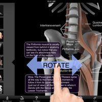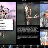 3D MODELS: There are seven 3D models, each model allows you to control a body area in 3-D space, with multiple stops along the way that identifying the structures and give comments on each area. Models cover the ankle, knee, pelvis, shoulder, face, hand, and a detailed look at the vertebrae.