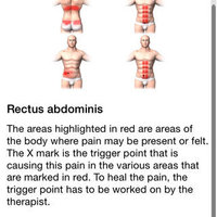 This App features hundreds of trigger points throughout the entire body and shows you each trigger point's corresponding referral patterns (where the pain could exist in the body. Not only will you be able to visually see the pain areas and trigger points, you will also be able to read about each (their causes and remedies). Further, you will find recommended exercises to prevent or mitigate such pain.