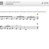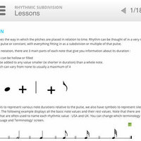 Comprehensive lessons allow students to learn about each rhythmic value, and playback notated examples. The lessons cover note values from whole notes to 32nd notes, plus rests and dotted values.