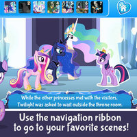 Being a princess doesn't come with an instruction manual, but neither does becoming a hero! In TWILIGHT’S KINGDOM, the first ever MY LITTLE PONY deluxe storybook app, Twilight Sparkle is Equestria’s newest princess, and she’s looking for a way to prove herself worthy of the title. When a villainous centaur starts stealing magic from Unicorns throughout the land and even threatens to consume the Alicorn princesses’ magic, Twilight wants nothing more than to track down Lord Tirek, but someone else is chosen in her place. Discord! Twilight needs help from her closest friends, and a surprise ally, to restore magic to Equestria and unlock a kingdom fit for a princess.