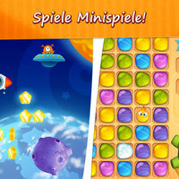 • PLAY MINI-GAMES! Send Om Nom on a space trip, or power up your brain with a ‘match-three’ puzzle.