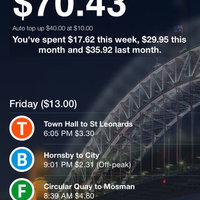 Use My Opal to track your balance across multiple Opal cards and see your recent journey history across Sydney trains, ferries, buses and light rail.