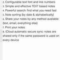 • iCloud automatic secure sync: notes are shared only if the same password is used on every device