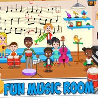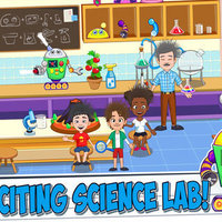 The bell is ringing at the My Town : School! Let your child show you what they’re in their classroom by visiting the My Town classroom. Do your children play an instrument? Let them play some music for you in the My Town music class where they can learn notes and play the piano, strum along to some tunes on the guitar or make some noise on the drums! Become a mad scientist in the science lab, but don’t miss the Tesla before you head out to the school yard where the coach will teach a variety of sports like tennis, baseball, basketball and even badminton!