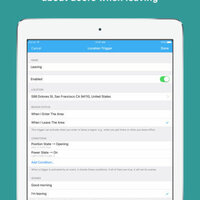 Create timer and event triggers to control action sets/scenes at specific times when you get to locations, or when an accessory is in a specific status. e.g. an event trigger turns off the lights when you leave the office after sunset only if they are still on.