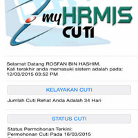 Ciri-ciri yang terdapat dalam Aplikasi MyHRMIS Cuti