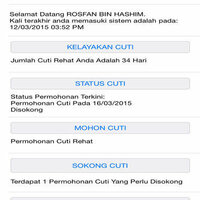 3. Sokong Cuti - Memberi kemudahan untuk Pegawai Penyokong membuat semakan permohonan cuti dan menyokong cuti