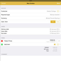 MyInvoice is most advanced software for sales, stock, customers and products management for iPhone and iPad. It was designed to be used at whole world with knowledge of local specifities like in European Union, USA, Canada & Russia. We support all kind of taxes like VAT, GST, compound and group taxes. Issuing invoices is very easy and fast - just 30 seconds is enough to issue an invoice. You can send it as PDF, print on AirPrint printer or on mobile thermal printers.