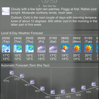 1. The notificaiton service of weather warnings, Special Weather Tips, and Location-based Rain Forecast is provided through the Apple Push Notification service (APNs). The Hong Kong Observatory cannot guarantee the reception of the above notifications by users. Users should not rely on the mobile app as the only means for reception of important weather information. Depending on factors such as network usage and quality of user's mobile phone connection, it may take 5 to 20 minuntes or even longer for the app to receive the notification after it is issued by the Hong Kong Observatory.