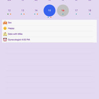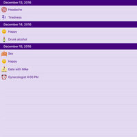 The calendar view gives you an overview of the last insert or removing, the current date and future ring dates. Additional you can save more important information like period strength, feelings, pain or add your own note or appointment.