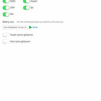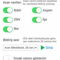 Seçimlər bölməsində bildiriş səsi üçün müxtəlif azan və xəbərdarlıq səsi seçə bilərsiniz. Bundan əlavə 5 vaxtdan hansılarda azan bildirişi olmasını da seçə bilərsiniz. Əlavə olaraq imsak vaxtını göstərməsini seçimlərdə aktiv edə bilərsiniz.