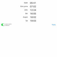 Namaz vaxtı proqramı Azərbaycanın şəhər və rayonları üçün namaz və oruc vaxtlarını göstərən proqramdır.