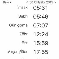 Vaxtlar qafqazislam.com (Qafqaz Müsəlmanları İdarəsinin rəsmi saytı) saytından götürülmüşdür.