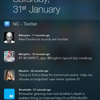 • "NC is a clever app that takes advantage of iOS 8’s notification center widgets in a unique way. This app adds a quick preview of the most recent tweets from your timeline to your notifications menu" ~ mashable.com