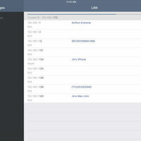 It is equipped with a high-performance wifi device discovery tool, including all the LAN device's addresses and names. Further, arbitrary device's reachability can be tested with the provided ping tool. Finally, it displays various useful information related to your wifi/cell connection. Everything works with both IPv4 and IPv6.