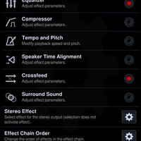 The reliable, platform independent, native core provides consistent behavior on all devices. Carefully developed DSP effects such as Parametric or Graphic EQ, Compressor, Surround Sound, Crossfeeder, Crossfader, Tempo, Pitch and others, help to tune audio to a desired result.