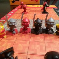 Your Ninjas must defend the honor of their dōjō against a rival dōjō. Victory hinges on eliminating Ninjas and skillfully venturing into the opponent’s dōjō. But how far do your Ninjas dare to go...and will they return? Every move is critical as you position your Ninjas for defense and ready them for their mission!