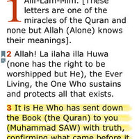 As with any translation of the original Arabic into another language, in this case English, this is an interpretation of the meanings of the Noble Qur'an (Word of God). The translation is heavily interspersed with commentaries and notes from At-Tabari, Al-Qurtubi and Ibn Kathir.