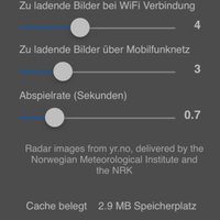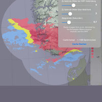 Nordic Radar uses the freely available radar maps from yr.no, delivered by the Norwegian Meteorological Institute and the NRK.