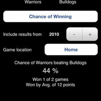 While history is a good indication of the future, it does not always guarantee the result but by using NRL Rugby League, you can work out how your team is going in real time. Using a combination of fancy formulas and historical results, NRL Rugby League will calculate the chances of your team winning as the game happens, depending on the situation and time remaining. 10 minutes to go and leading by 5? NRL Rugby League will crunch the numbers and let you tell your mates what's going to happen. Check how often your team will win after leading at half time and take into account where you are playing and what historic results you want included.