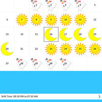 Your homepage monthly calendar has simple and clear icons to display your shift types for morning, afternoon and night shifts. Your new roster can be inserted in easy blocks or by individual days if needed. Adding a shift reminder alarm is simple and with a range of options.