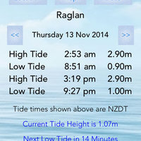 New Zealand Tide Information. Use your devices GPS to show your location or pick yourself from 250 locations around New Zealand. No Internet Access is required for the lookups on the tide tables however the GPS Maps do require a data connection. So, if you are sitting on a beach you can still display the high and low tide information. You can display the current date, or any date into the future right through to December 2017. Daylight Saving Times are calculated. Also shown are the current tide heights and the time to the next tide. Major ports included are Auckland, Bluff, Lyttelton, Marsden Point, Napier, Nelson, Onehunga, Picton, Port Chalmers, Port Taranaki, Tauranga, Timaru, Wellington and Westport.