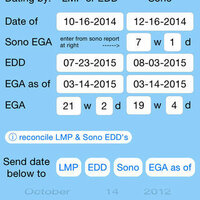 It contains a calendar calculator to determine EDD (EDC) from LMP or from a sonogram report. The calendar calculator also provides gestational age (EGA) as of any date for a given EDD or LMP. Because the calculator works off the real calendar, it is accurate for leap years too.
