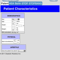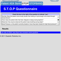 WARNING: This software does not provide a diagnosis nor medical advice, but only a general likelihood (low or high) of Obstructive Sleep Apnea. The software is intended to be a convenience tool providing the screening tests in an accessible and portable format. The software is not intended to replace a physician's clinical judgement.
