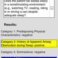 Once data is input, the likelihood of OSA is recalculated for each category and questionnaire and the results are displayed at the bottom of the screen. Statements for categories within each test and for the overall result of the test are shown with highlighting according to the result: