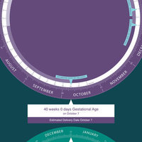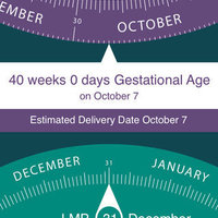 We've separated the outer and inner wheels to make it easy-to-use. Spin the green wheel to set the LMP date. Spin the purple wheel to browse important milestones, and to calculate the gestational age on a specific date (displayed in the middle).