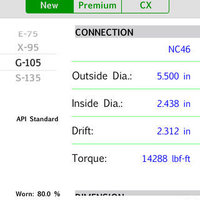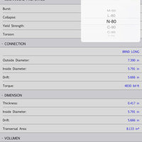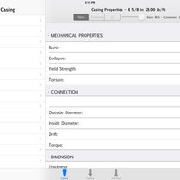 This simple app provides an easy way to search an Oil Well Pipe (Drilling, Casing & Tubing) features like: Burst, Collapse, Yield Strength, Capacity, Thickness, Inside Diameter & Transversal Area.
