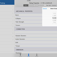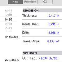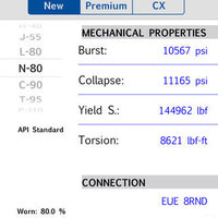 Other feature added is that you can choose an individual unit system for each one properties like Burst & Collapse (psi, kgf/cm2, kPa), Torque & Torsion (lbf-ft, N-m), Yield Strength (lbf, kgf, N), Capacity & Displacement (bls/1000ft, galUS/ft, galUK/ft, ft3/ft, L/ft, L/m, m3/m), Thickness, Inside Diameter & Drift (in, mm, cm) and Transversal Area (in2, cm2). To choose the desire units just Tap the row of the property that you want to change.