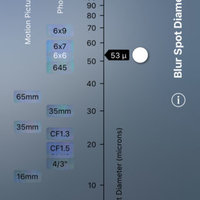 • A marker can be placed on the blur spot diameter scale as a reminder of what you consider acceptable blur sizes.