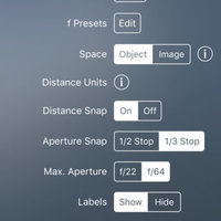• The app instantly displays the focus distance and aperture that minimise the combined effects of defocus blur and diffraction, for the sharpest image across the desired depth that the laws of physics will allow (and therefore, in all cases, sharper than what is achieved via traditional practice).