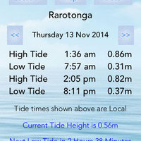 With this application you can view the tide times and tide heights for the Pacific Islands. This includes Rarotonga (Cook Islands), Samoa, Tonga, Kiribati, Marshall Islands, Micronesia, Nauru, Palau Islands, Papua New Guinea, Solomon Islands, Tuvalu & Vanuatu. No Internet connection is required for lookups, however the GPS based maps do require a data connection to display.