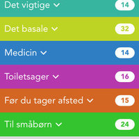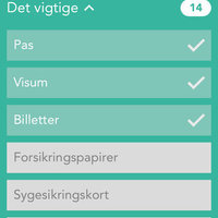 It is easy to mark what has been packed, and what is missing, which will give you a superb overview before your trip. You can customize the lists yourself by adding categories and items.