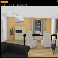 The virtual design app Palette@Home leads the user intuitively through all the stages of the planning process from start to finish. This begins with the definition of your rooms cubic measures and continues with the placement of doors, windows and if desired even front wall installations and pitched roofs. The clearly organised objects are readily available and can be dragged into the plan and positioned easily and quickly. The objects can also align themselves to the walls automatically. At any time you can switch into 3D mode and freely move about and examine your room. You can now explore your room in real time while accompanied by our company cat, - the “Palette-cat”. The immersive feel and quality of the graphics are impressive.