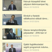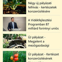 Az alkalmazásban megjelennek és böngészhetőek a Széchenyi 2020 pályázati közlemények, a Mezőgazdasági és Vidékfejlesztési Hivatal (MVH) hírei, a Pályázati Hírek portál (www.palyazatihirek.eu) vezető hírei, válogatott video hírek, illetve kapcsolódó rádióadások.