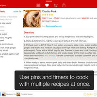 • Tools to help you cook: start multiple timers, pin active recipes to easily switch between them, and scale ingredients to your desired serving size.