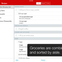 • Intelligent grocery list automatically combines your ingredients and sorts them by aisle.