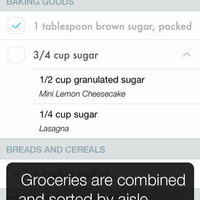• Intelligent grocery list automatically combines your ingredients and sorts them by aisle.