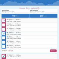 Ai acces in timp real la toate ofertele companiilor aeriene din intreaga lume. Controlezi alegerea celei mai bune solutii de zbor. Rezervarea biletului de avion este gratuita. Iti cerem sa platesti doar daca te-ai decis sa cumperi biletul de avion. Confirmarea rezervarii si emiterea biletelor de avion este inclusa in pachet. Nu trebuie sa stai la coada!