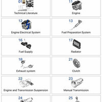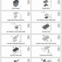 Information is divided into blocks: gearbox, bodywork, braking system, electrical system, engine, chassis, etc.;