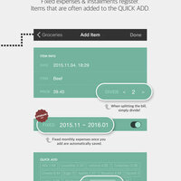 - History can be recorded by changing income mode, to spending mode by pulling down on the screen.