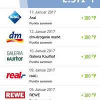 # bunt: Punkten u.a. bei Aral, dm, Galeria Kaufhof, real,-, Rewe, Allianz, Alnatura, American Express, A.T.U., Bild am Sonntag, Burger King, Channel21, design3000, Depot, Expedia, Lufthansa, mydays, myToys, Opel, Sixt, Thalia, Telekom, Miles & More, eBay, Zalando, Tchibo, myToys, adidas, home24, ImmobilienScout24