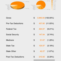 Calculated paychecks can be viewed as a pie chart showing the percentage distribution of your gross pay. Paycheck details can be emailed to an employee, employer or a payroll service provider.