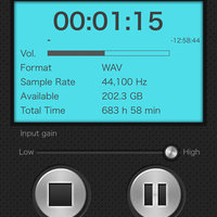 This is a simple voice recorder. It records by high quality(PCM/WAVE) and AAC. Records in 8000,11025, 16000, 22050, 44100 and 48000Hz - 16bits - Mono. Record: - Records by background - 16bits/Mono Playback: - Playback by background - Rename Settings: - Sampling rate(8000,11025, 16000, 22050, 44100 and 48000Hz : WAVE) - Bit rate (64, 128, 160 kbps : AAC)