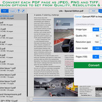 PDF to JPG is an intuitive application to convert PDF documents into best quality JPG, PNG and TIFF images on iPhones and iPads. PDF to JPG converts each PDF page as image and make it available for any application for reuse.