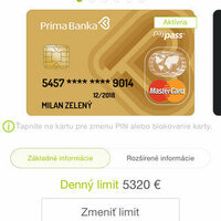 Do Internet bankingu Prima banky sa prihlásite menom, heslom a prihlásenie overíte SMS kódom. Po prvotnom prihlásení si nastavíte 4-miestny PIN a na ďalší vstup do Internet bankingu stačí zadať už len 4-miestny PIN / Touch ID. Maximálny denný limit platieb zadaných cez aplikáciu je 1000 EUR.
